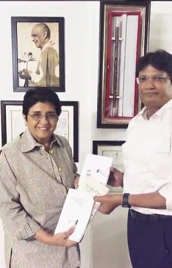 Shri Ashutosh Agnihotri presenting his books to Hon'ble Former Lieutenant Governor of Puducherry and India's First woman IPS Officer Mrs. Kiran Bedi .